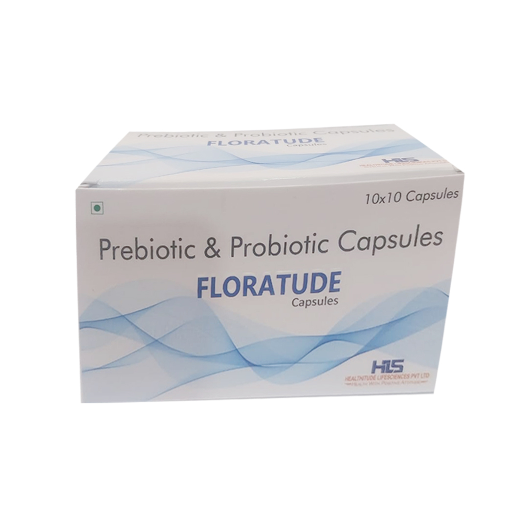 FLORATUDE is a high-potency, broad-spectrum probiotic-prebiotic formulation combining 10 Billion CFU from clinically validated strains of Bifidobacterium, Lactobacillus, and Saccharomyces Boulardii, supported by Fructo-Oligosaccharides (FOS). Designed to restore gut flora, enhance digestive resilience, and improve immune function, it is ideal for patients recovering from antibiotic use, managing IBS, or dealing with chronic gut imbalance. The inclusion of FOS enhances colonization efficiency, ensuring long-term microbial harmony and GI comfort. FLORATUDE is a complete gut health solution in a once-daily capsule.