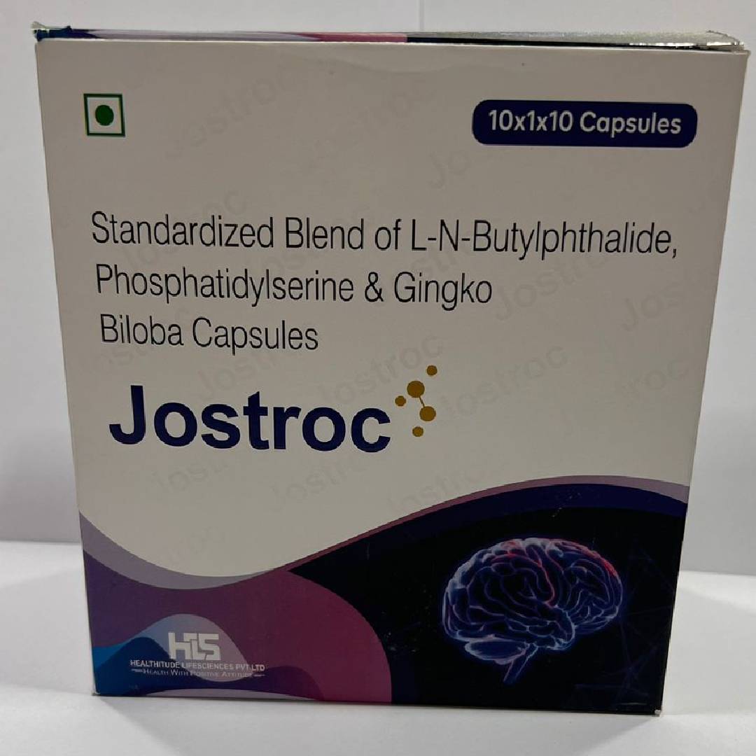 JOSTROC is a triple-action neuroprotective formulation that combines L-n-Butylphthalide (NBP) 200 mg, Phosphatidylserine 200 mg, and Ginkgo Biloba 40 mg in a convenient softgel capsule. Specially designed to support stroke recovery, cognitive restoration, and neurovascular health, it acts through multiple pathways—improving cerebral perfusion, reducing oxidative damage, and preserving neuronal membrane function. Ideal for use in acute ischemic stroke, vascular cognitive impairment, and early neurodegenerative changes, JOSTROC offers a clinically supported approach to restoring and maintaining brain vitality and mental clarity.