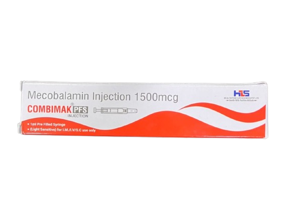 COMBIMAK PFS is a high-potency injectable Methylcobalamin (1500 mcg) formulation designed for rapid and effective management of B12 deficiency, neuropathies, and neurodegenerative conditions. As the active form of Vitamin B12, Methylcobalamin offers superior bioavailability, facilitating neuron repair, myelin synthesis, and nerve conduction restoration. It is particularly beneficial in diabetic neuropathy, alcohol-induced nerve damage, and B12 absorption disorders. Administered via IM or IV route, COMBIMAK PES ensures faster therapeutic onset, making it a preferred choice in both acute neurological presentations and long-term supportive care.