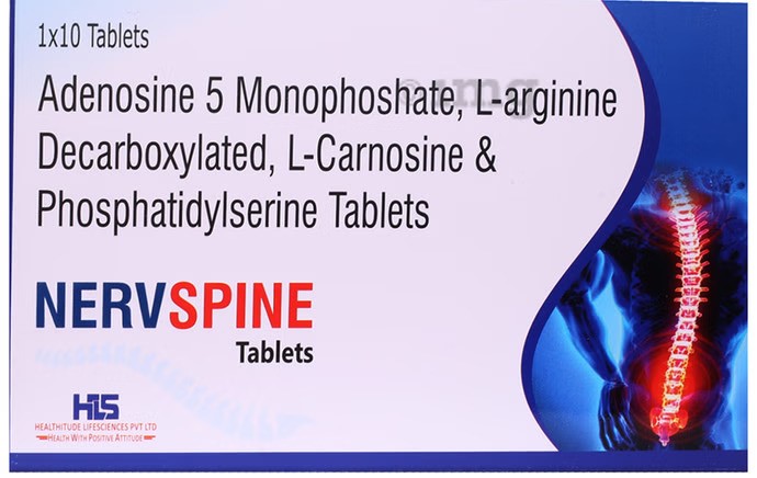 NERVSPINE is a comprehensive neuroprotective and cognitive-enhancing formula combining Adenosine-5-Monophosphate, Agmatine Sulphate, L-Carnosine, and Phosphatidylserine to target neuronal degeneration, cognitive fatigue, and memory decline. This unique blend revitalizes brain metabolism, enhances synaptic plasticity, and combats oxidative and inflammatory stress—making it an ideal adjunct in stroke recovery, early dementia, and age-related cognitive impairment. With a multifaceted mechanism supporting both cellular energy and neurochemical balance, NERVSPINE empowers patients to maintain mental clarity and neurological function in degenerative states.